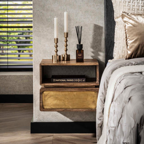 364,42Unit price /UnavailableFloating Industrial Naomi Bedside Table Acacia Wood 1 Drawer