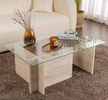 259,15Unit price /UnavailableRectangular Modern Coffee Table Vetroni Travertine Look - Glass - 105x65 cm