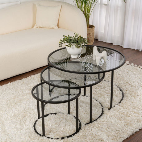 152,41Unit price /UnavailableModern Round Coffee Table Set of 2 Uru Black - Transparent Glass - 60/42 cm