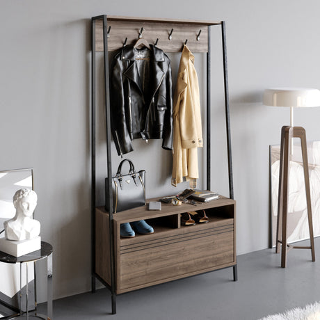 396,38Unit price /UnavailableWardrobe Furniture Coat Rack Walnut Melamine Devon - With Compartments and Drawer