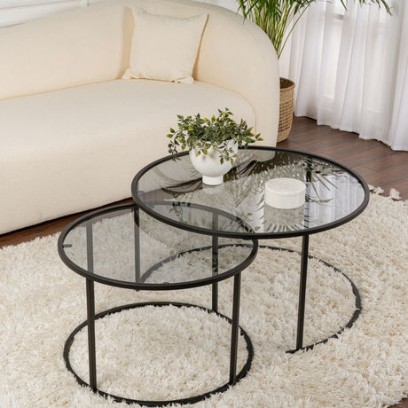 79,95Unit price /UnavailableModern Round Coffee Table Set of 2 Uru Black - Grey Glass - 80/60 cm