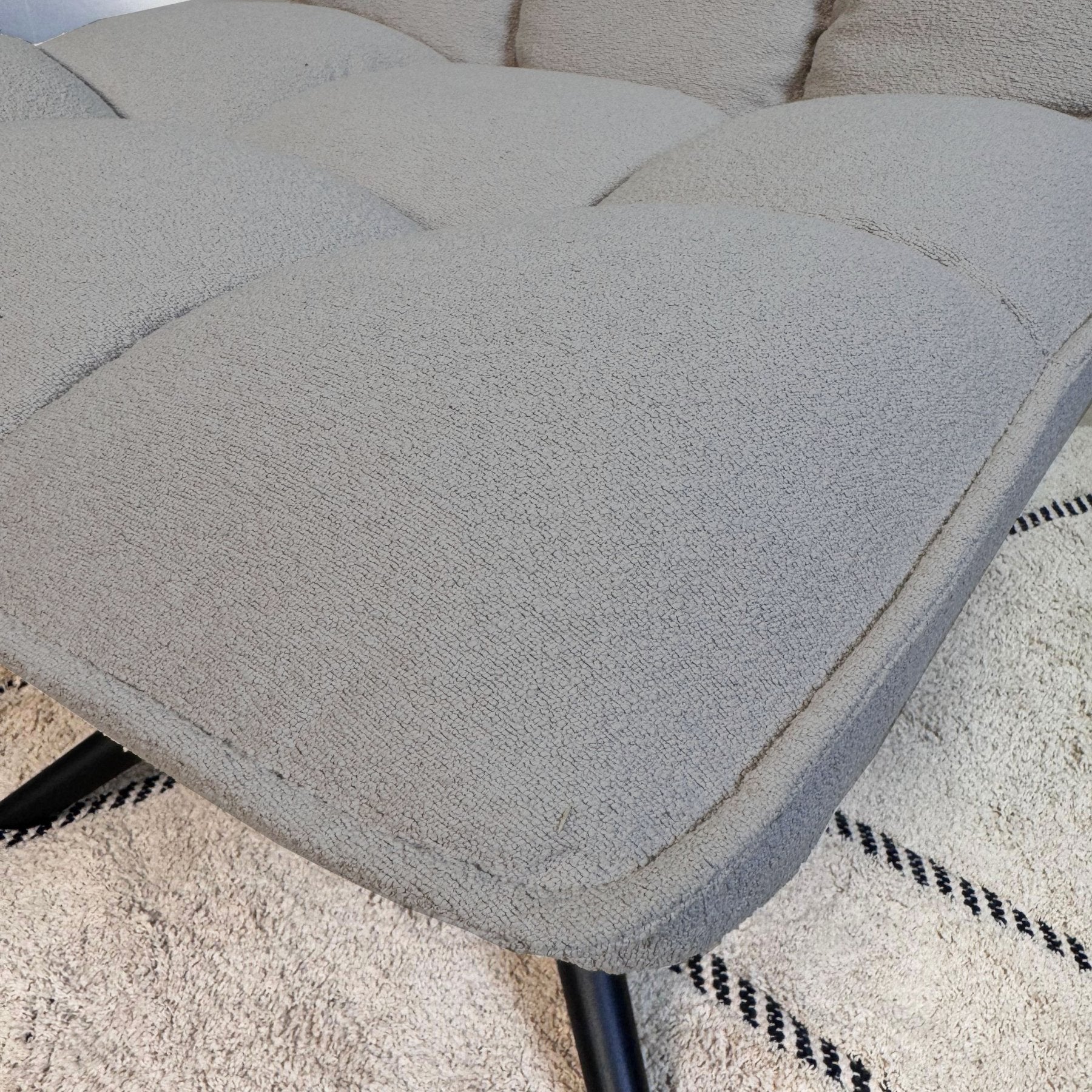 Bouclé, a durable and luxurious fabric with soft texture and loops, adds comfort and style to furniture, making it perfect for a warm and chic look in any interior.