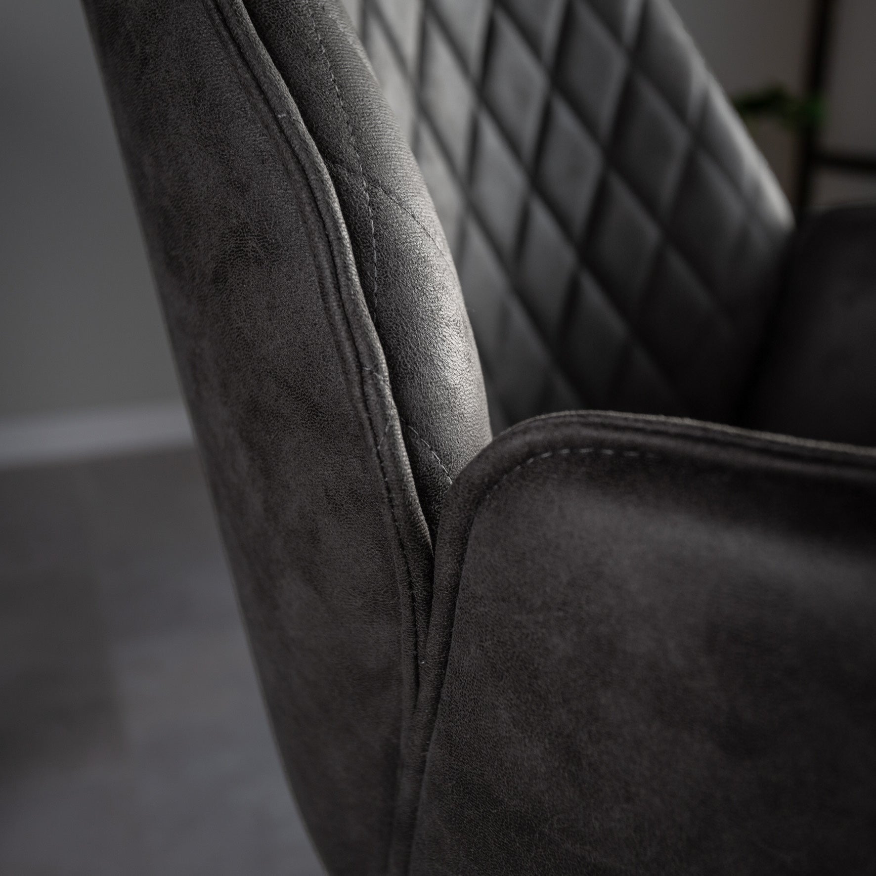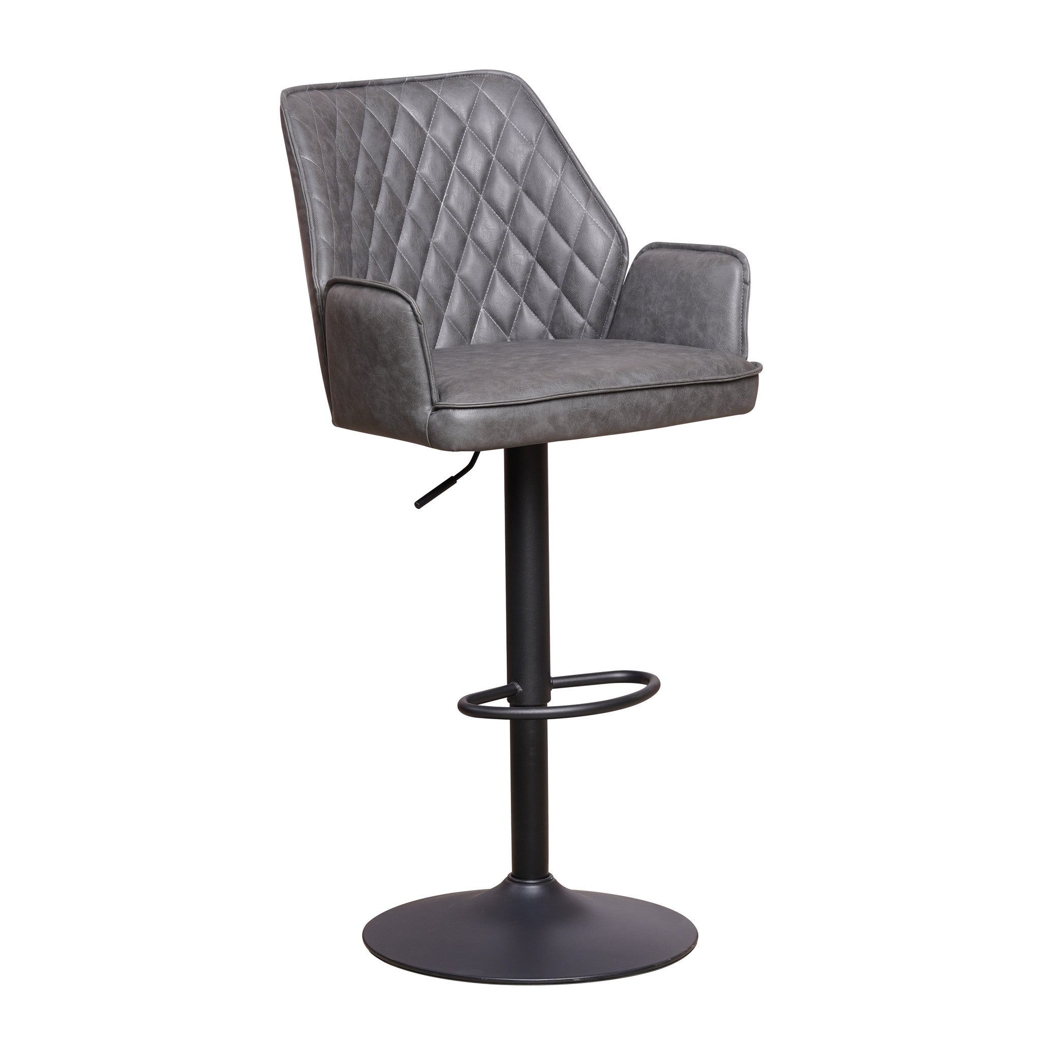Swivel Bar Stool Anthracite Microfiber Fabric Novan - Adjustable - With Armrests