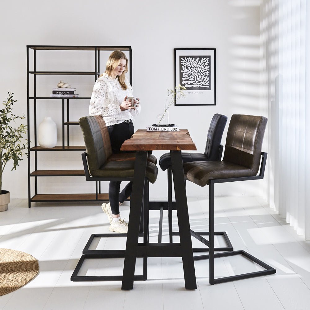 Bart table Quinty contains a metal A-leg as a frame. This ensures stability and the black metal also gives the product a robust and industrial character.