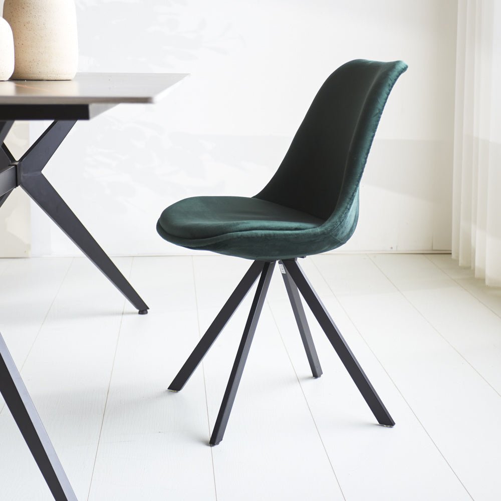 The velvet dining chair Jace exudes luxury. The dining chair is available in various colors, making it easy to find a spot for this beautiful dining chair in any interior. The chair has a modern look and with its black frame, it also fits perfectly in an industrial interior!