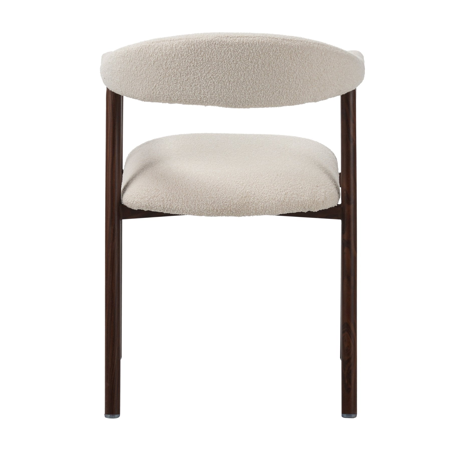 Japandi Dining Chair Ivory Bouclé Suki - Walnut Frame - With Armrests