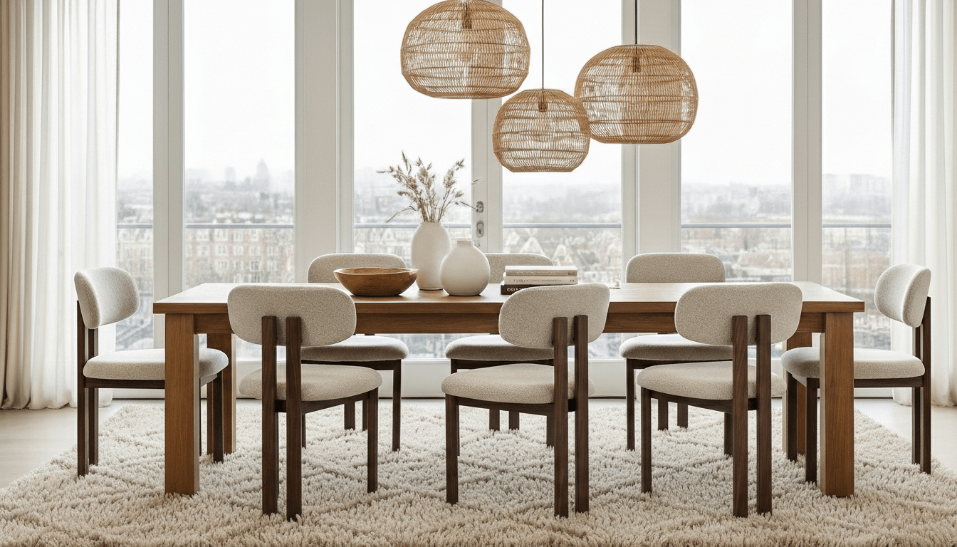 Bouclé, a durable and luxurious fabric with soft texture and loops, adds comfort and style to furniture, making it perfect for a warm and chic look in any interior.