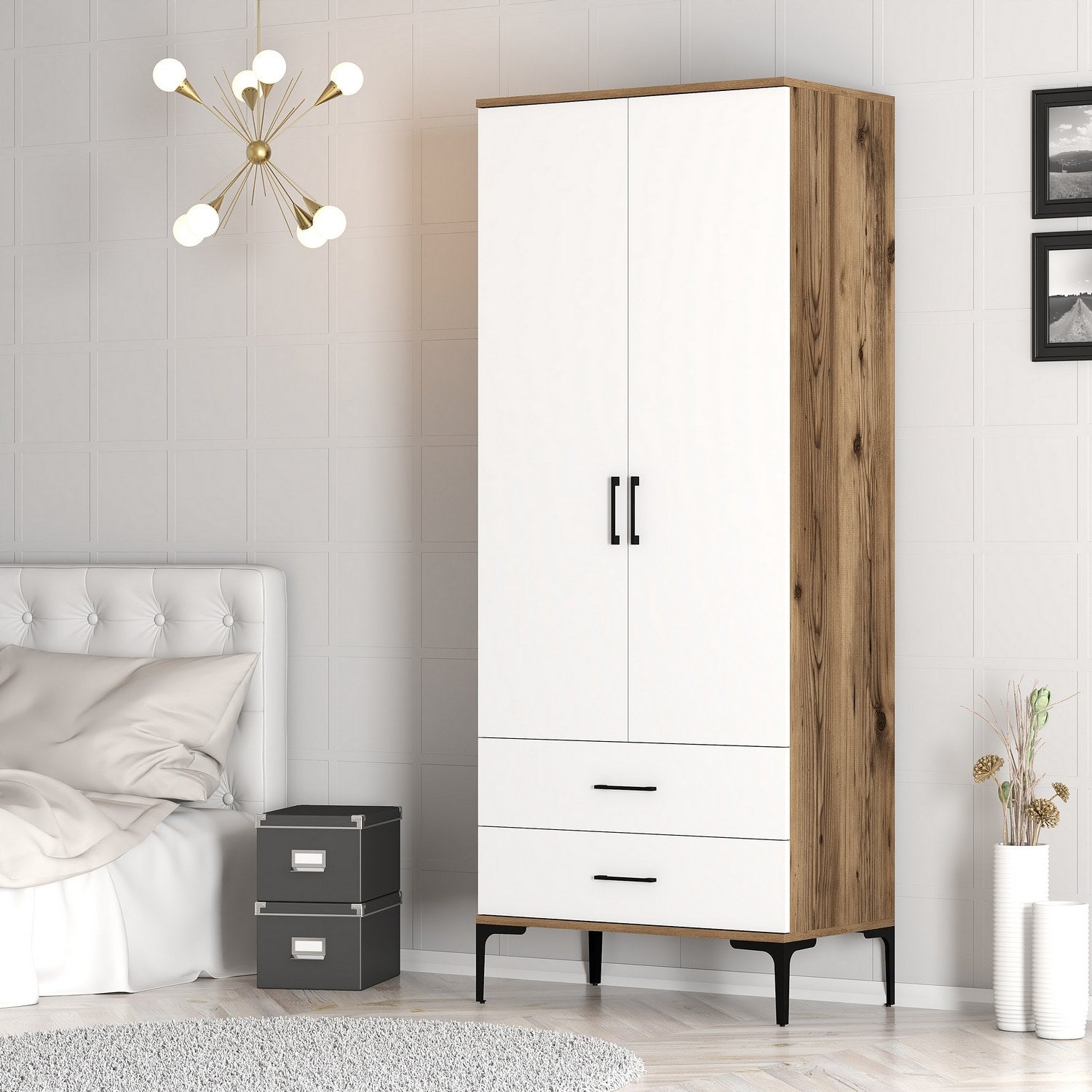 With its sleek design and beautiful combination of walnut and white color, this wardrobe will instantly enhance the aesthetic appeal of your bedroom. The contrasting colors create a modern and refined look that will impress your guests and give you a sense of pride in your space.