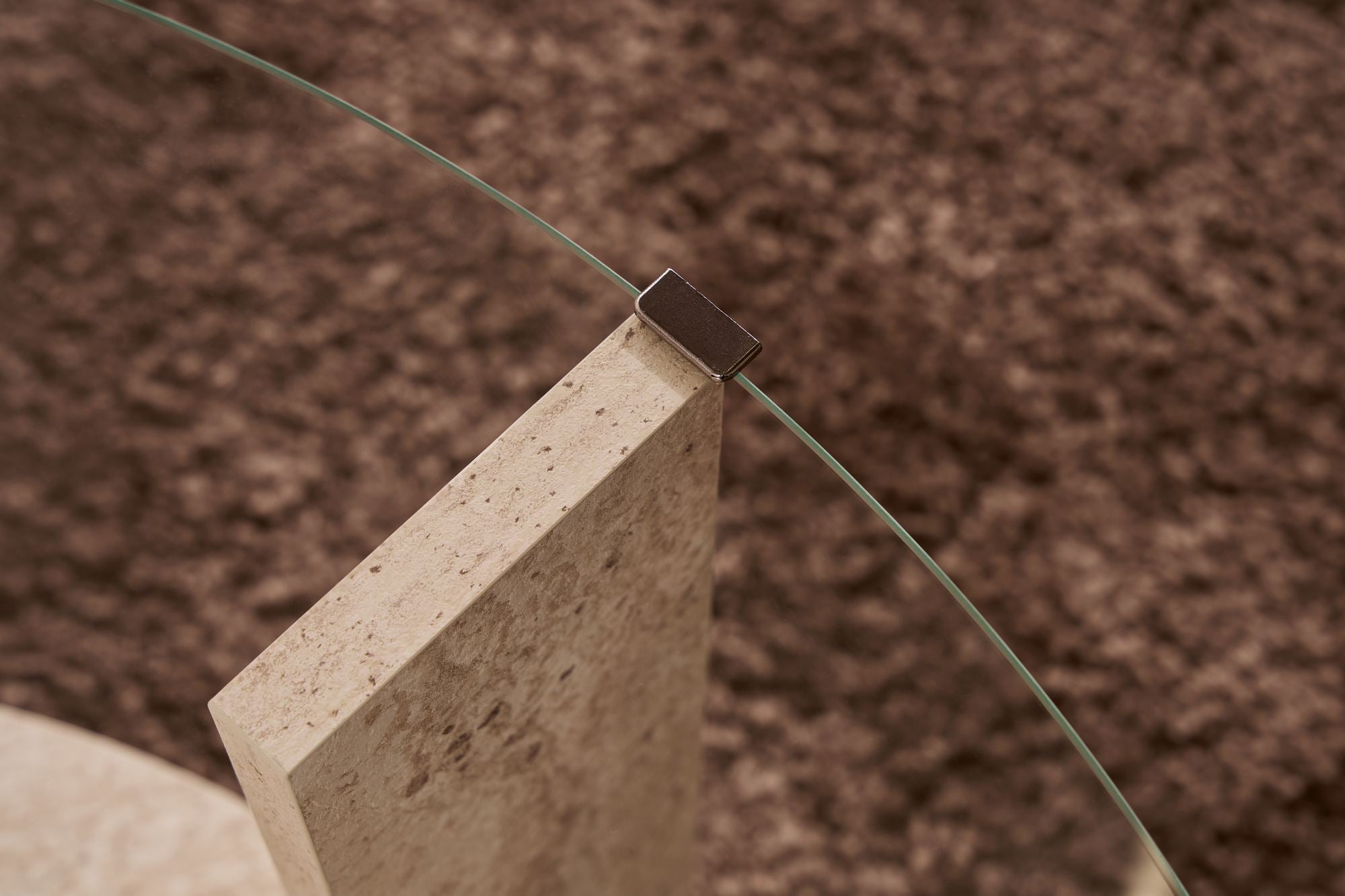 Deze salontafel combineert een helder gehard glas blad met warme travertine tinten voor een tijdloze, moderne uitstraling. Het frame is vervaardigd uit 100% melamine gecoate plaat, wat stabiliteit en een strak, onderhoudsvriendelijk karakter garandeert. Het spel tussen transparantie en kleur geeft elke kamer ruimte en stijl.