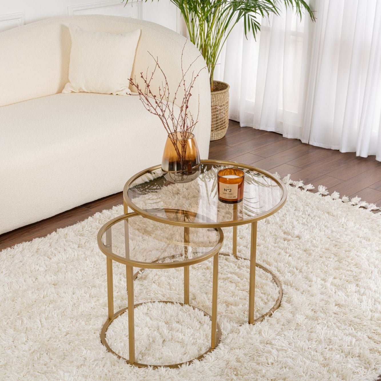 Modern Round Coffee Table Set of 2 Uru Gold - Bronze Glass - 60/42 cm