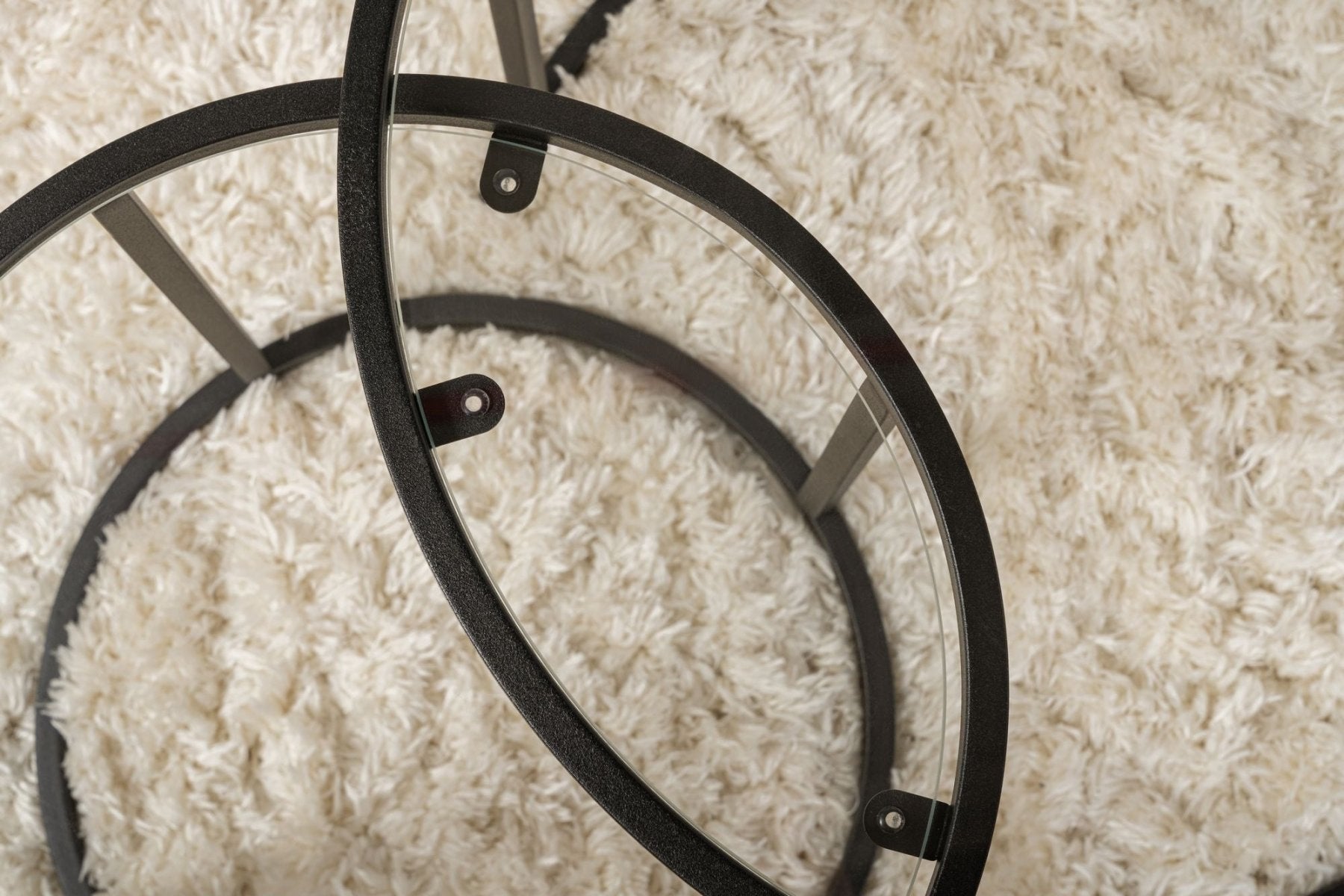 Description and specifications of Modern Round Coffee Table Set of 2 Uru Black - Transparent Glass - 60/42 cm