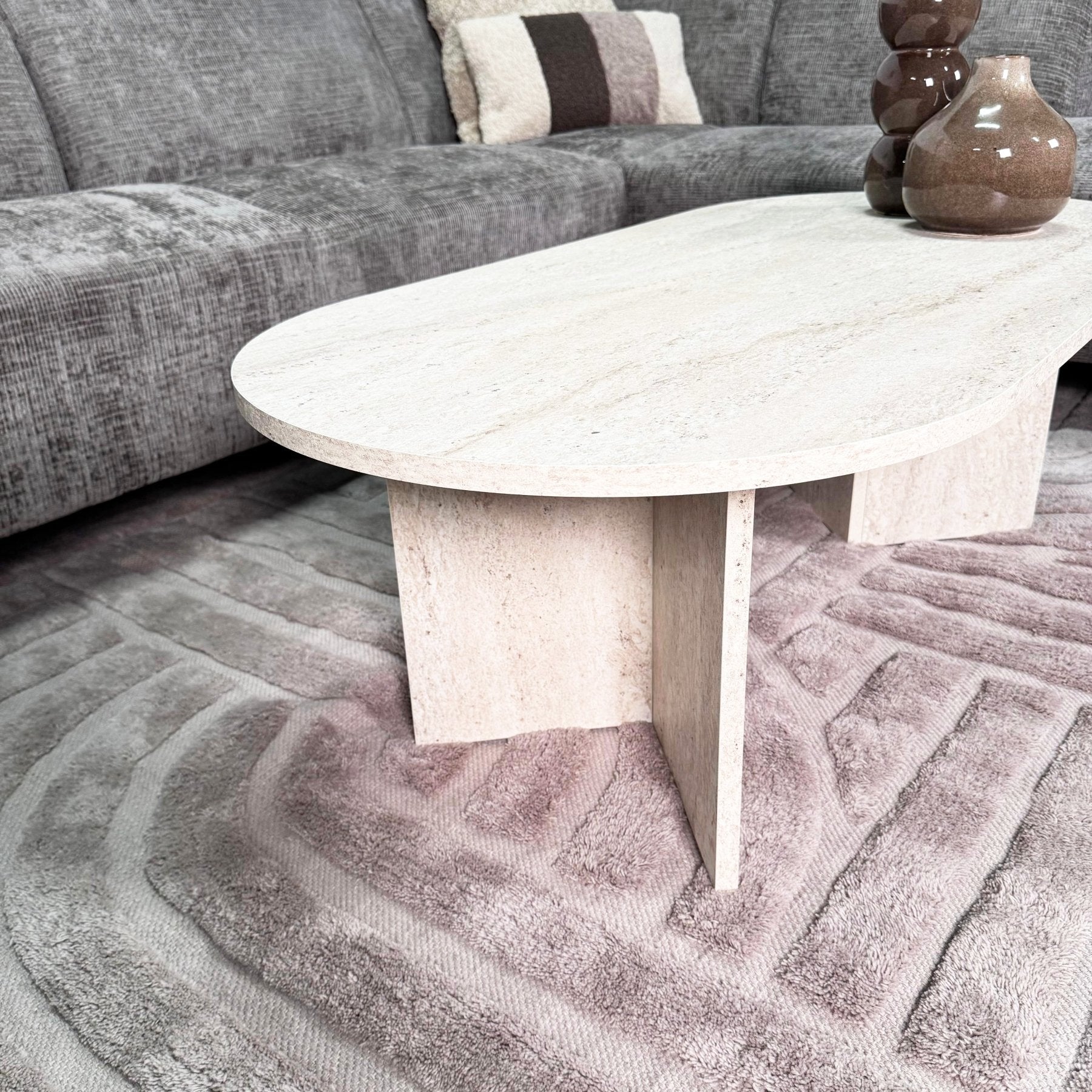 Oval Coffee Table Travertine look Sabla - 119x60