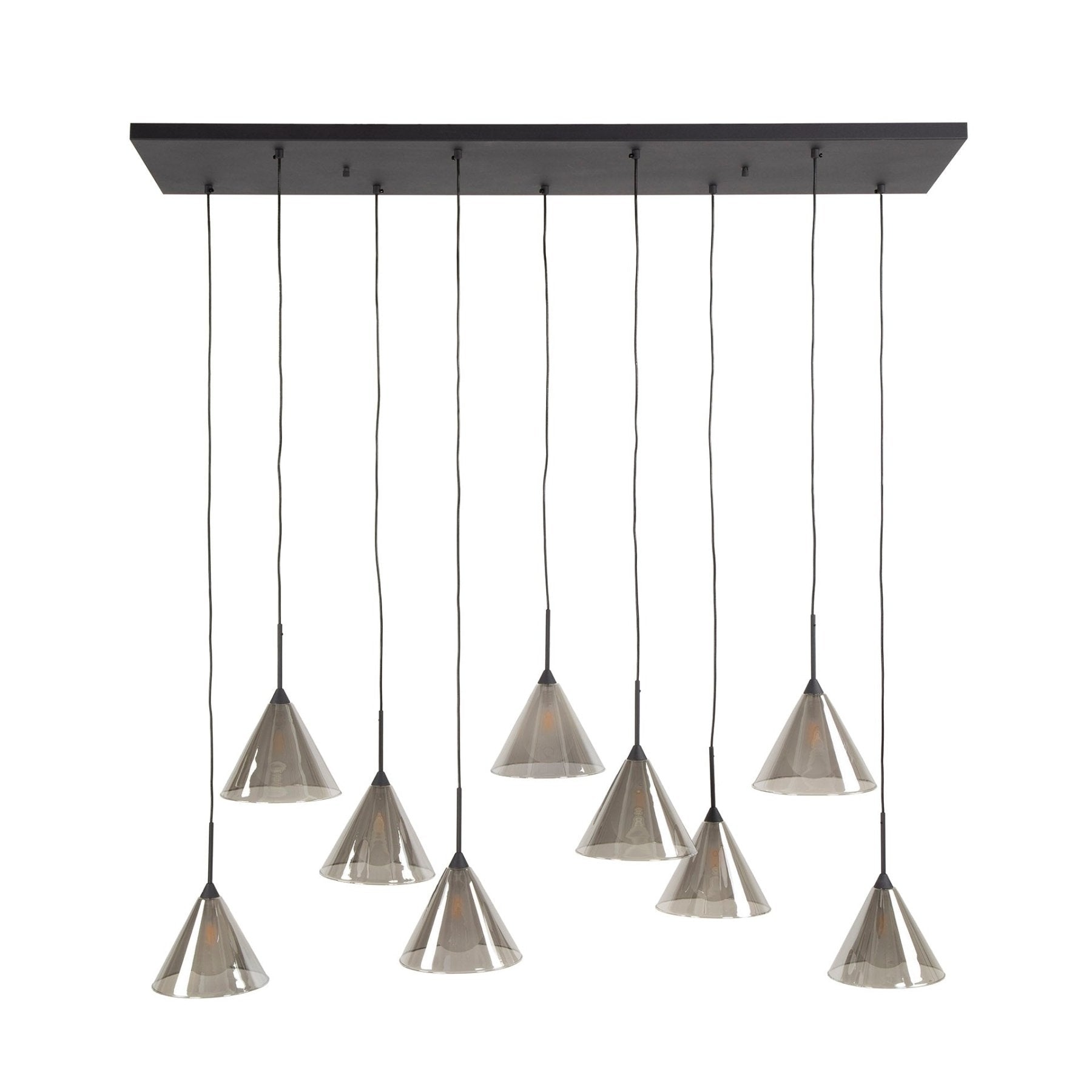 Pendant lamp Niaz 7-lights tapered shade smoke grey glass