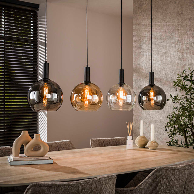 Make a style statement above your dining table with the Valeo pendant lamp. This 4-light eye-catcher combines sleek design with a warm atmosphere. The long metal bar in a deep black finish carries four light points that evenly illuminate your space. Thanks to its timeless silhouette, Valeo fits effortlessly into modern, Scandinavian, and industrial interiors. With its generous width of 135 cm and subtle depth of 25 cm, it is ideal above a dining table, bar, or kitchen island. Use your favorite light sources for precisely the look and ambiance you desire; combined with dimmable light sources and an external dimmer, you can easily create the perfect ambiance.