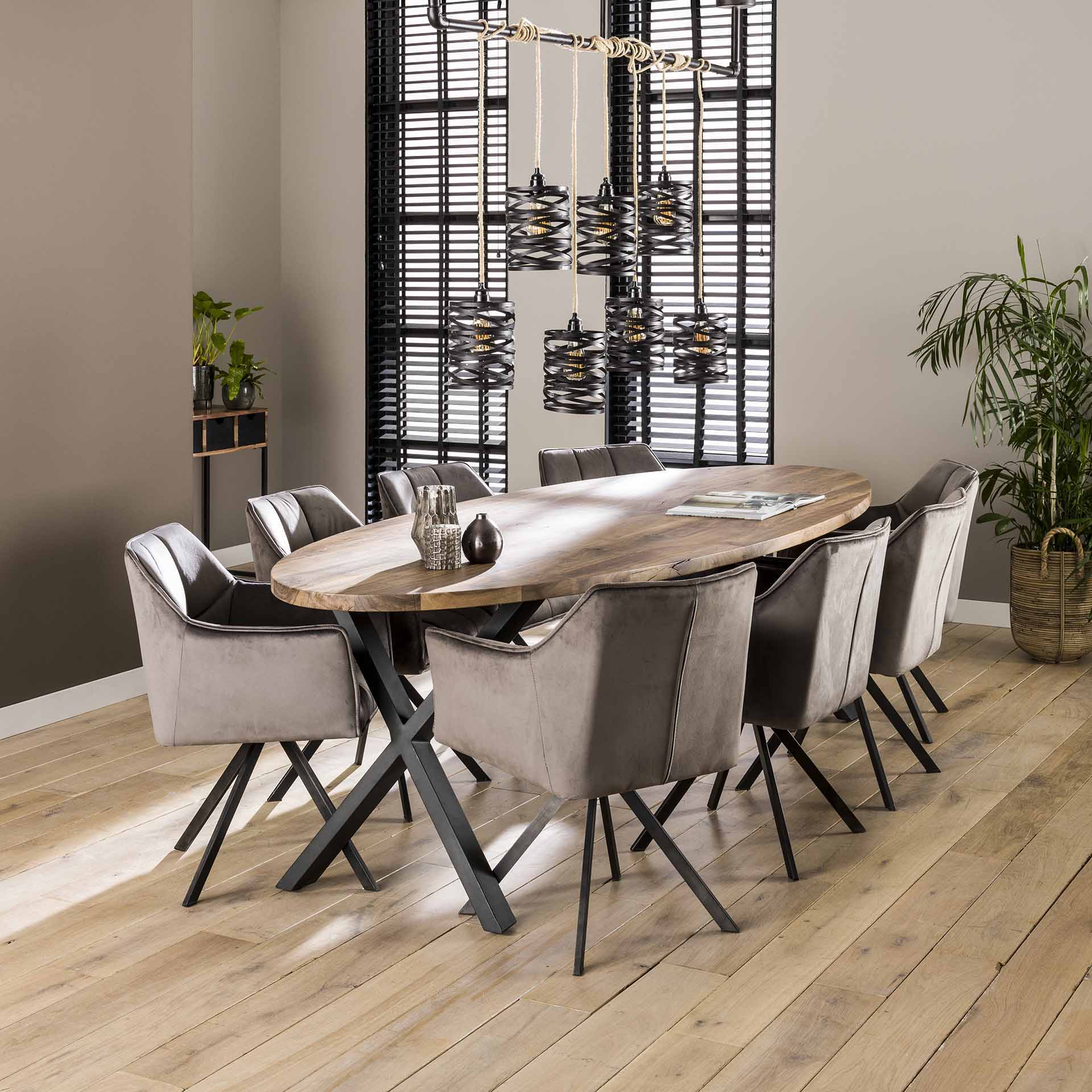 This Lino set of 2 swivel dining chairs in anthracite velvet combines soft seating comfort with a modern look. The chairs are designed with a subtle grid pattern and sturdy legs for stability. Thanks to the swiveling seat, they are ideal for both dining rooms and flexible living spaces where comfort and freedom of movement are important. The velvet fabric adds a luxurious touch and is easy to combine with various interior styles.