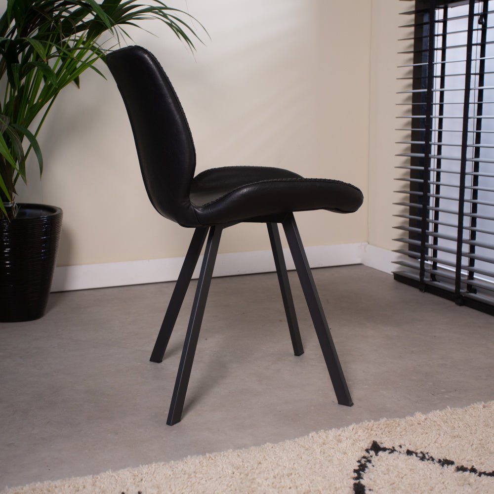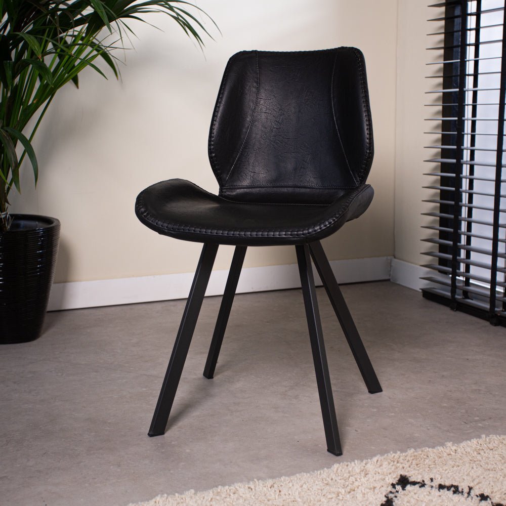 Industrial Dining Chair Black Barry Faux Leather - Without Armrests
