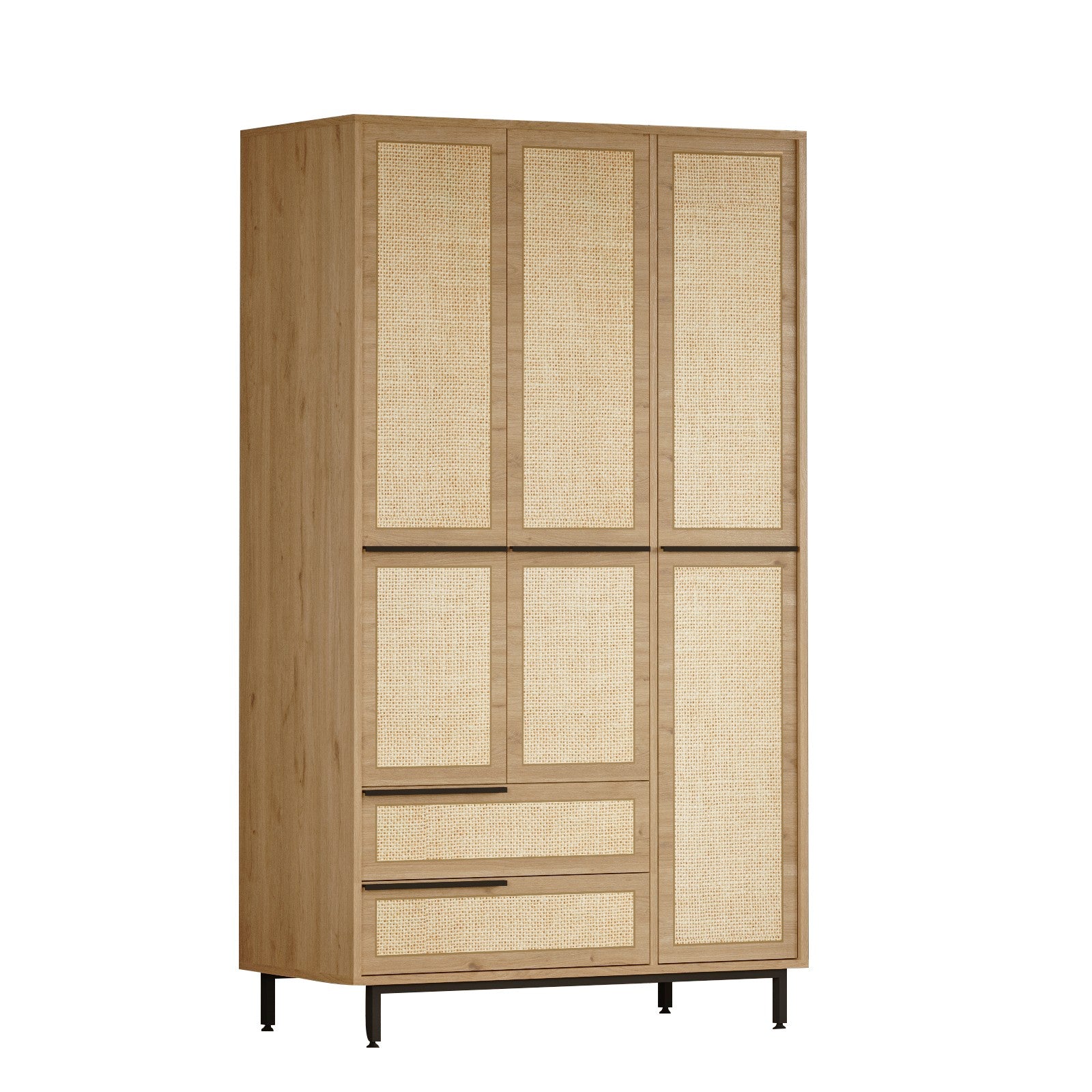 Our wardrobe is crafted with utmost precision from 100% melamine, ensuring durability and a long lifespan. The thickness of 18 mm provides extra sturdiness, making it a reliable storage solution for years to come. The beautiful colors of walnut and oak blend seamlessly together, creating a warm and inviting atmosphere in your bedroom.